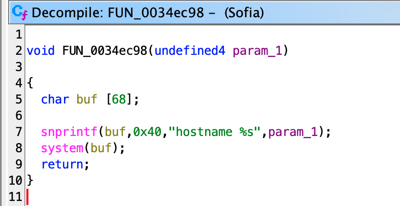 "hostname %s"snprintfsystem()The same vulnerable code pattern was confirmed in both analyzed firmware lines.